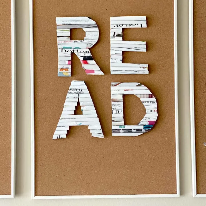 Make monogram wall art by recycling magazines. You can make words, letters, or quotes. This is a great idea for a classroom, kids' playroom or even a bedroom.
