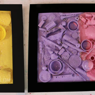 Instead of throwing out those broken crayons, turn them into art with melted crayon art. Kids will get a kick out of creating and framing this for their home, or to give to grandparents.